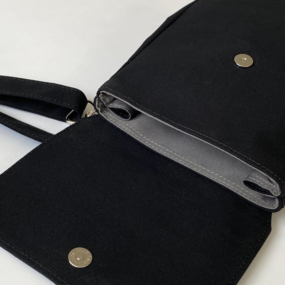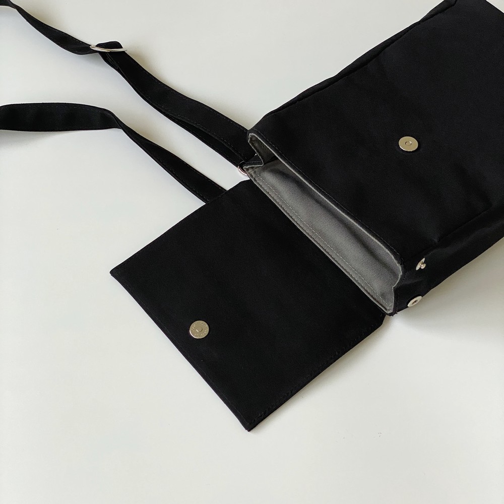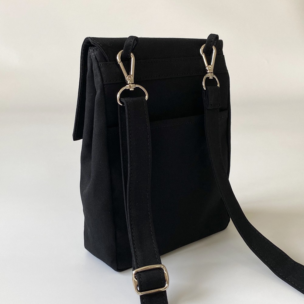 접히는 옆라인을 제외하고 가방 앞,뒤 그리고 뚜껑 안에 전체적으로 덧대는 3중 작업을 하여 견고하고 내구성이 튼튼합니다. 잘 보이지 않는 안감의 색감과 원단까지 신경썼습니다. 바닥재에는 단단한 가죽판을 안에 넣어, 천 특유의 부드러움과 가죽가방의 단단함이 공존하여 물건을 넣어도 쳐짐이 없습니다. 깊고 넓은 안주머니와, 가방 외부의 뒷면 주머니는 자주 사용하는 핸드폰과 카드, 요즘 필수품인 마스크를 잠시 수납하기에 편리합니다. 원단은 섬세한 염색 작업으로 독특한 색감과, 20수3합으로 일반적인 천보다 조직이 견고하며 짜임이 좋습니다. 스트랩은 크로스,숄더로 조절 가능합니다.