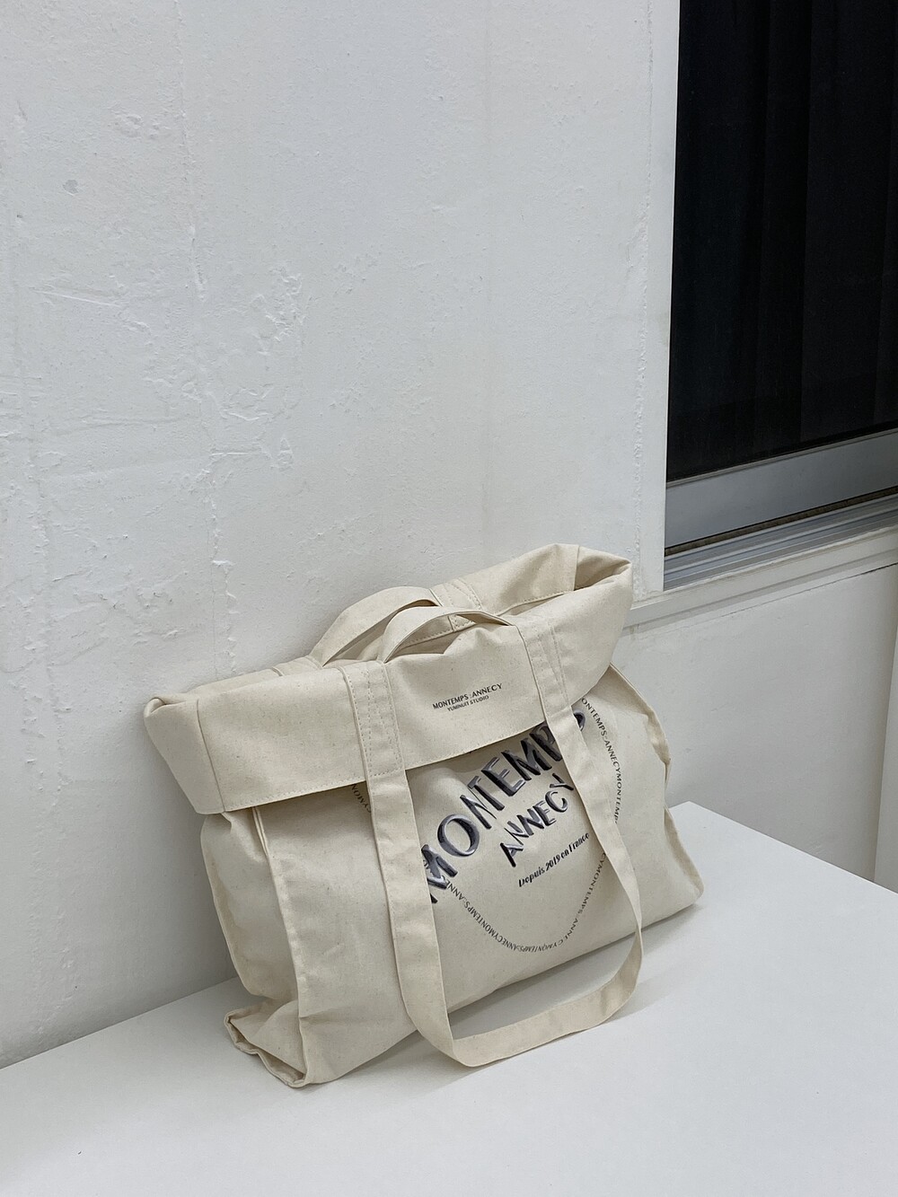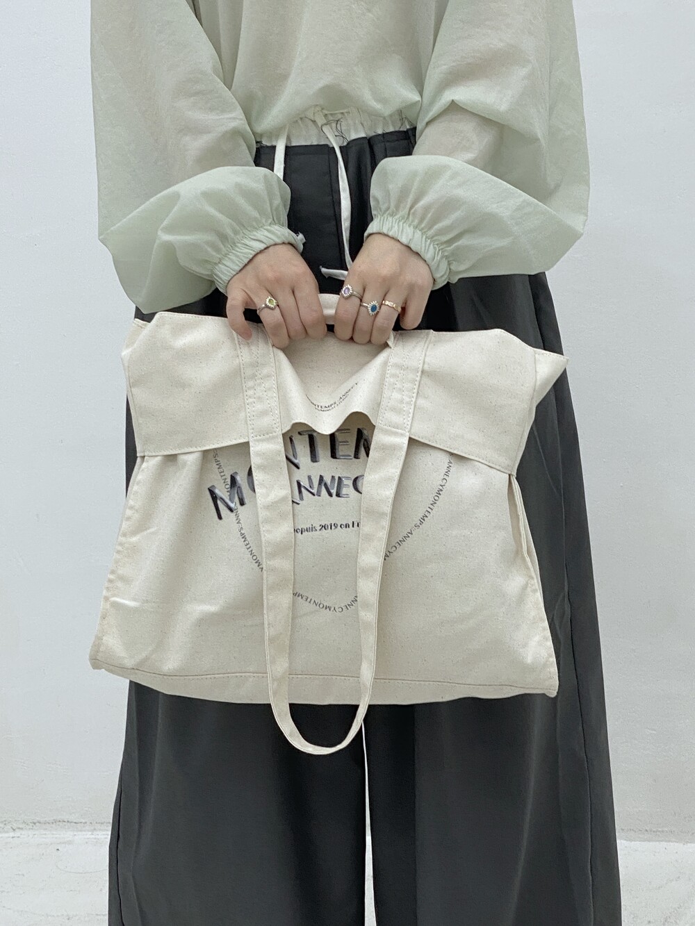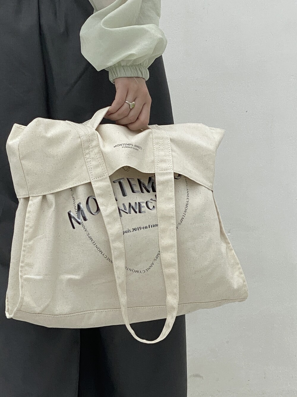 큰 사이즈의 기본 에코백에서부터 윗면을 접어 핸디 백이 가능하여 다양한 룩에 어우러집니다.