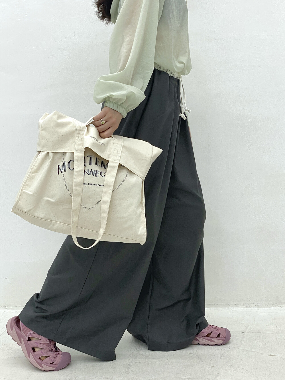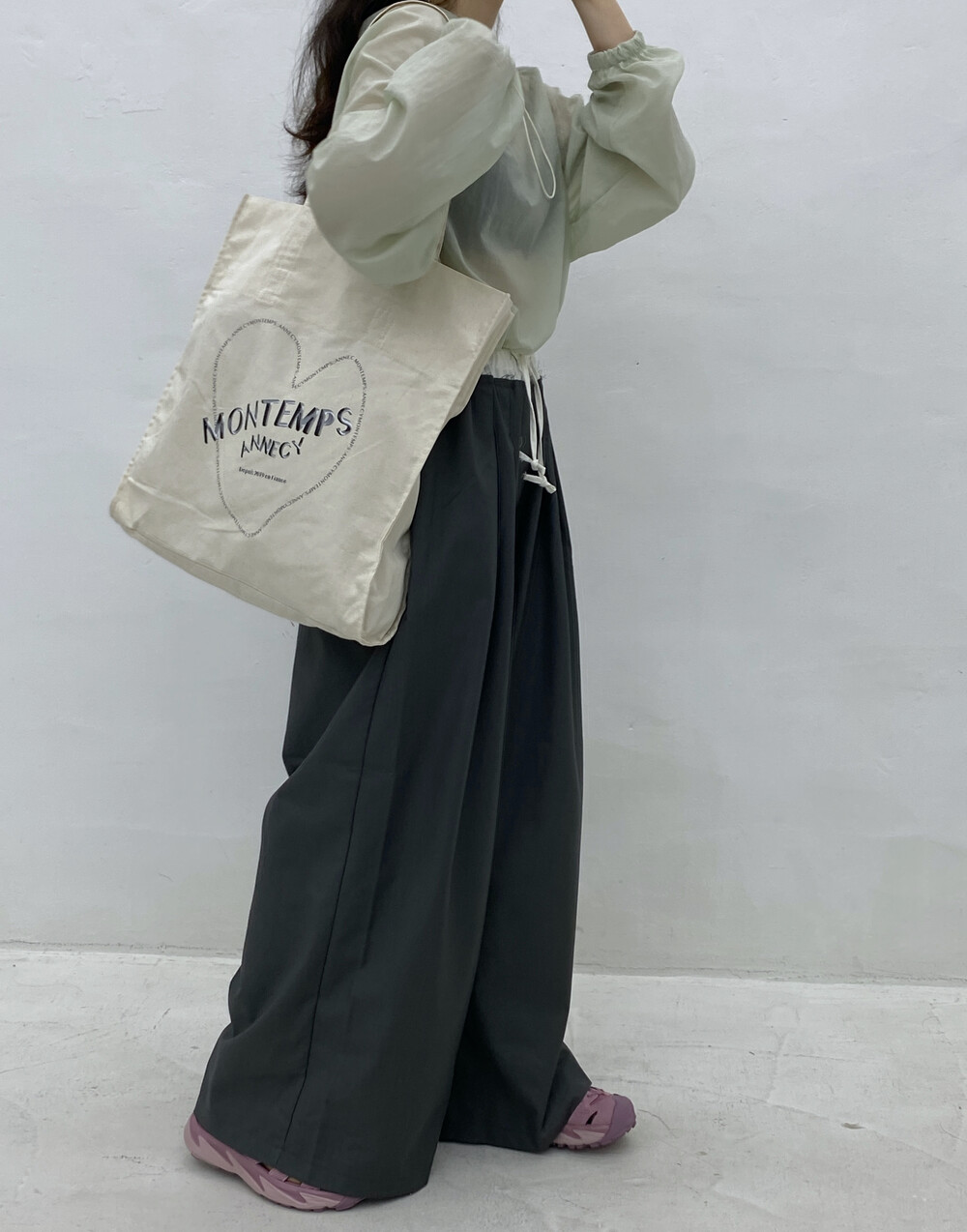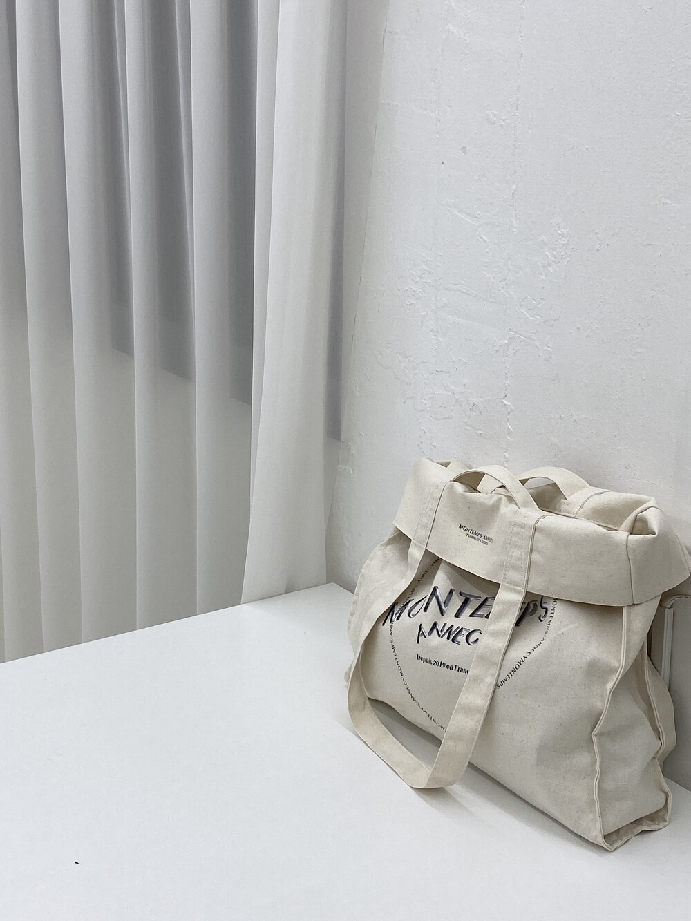 큰 사이즈의 기본 에코백에서부터 윗면을 접어 핸디 백이 가능하여 다양한 룩에 어우러집니다.
