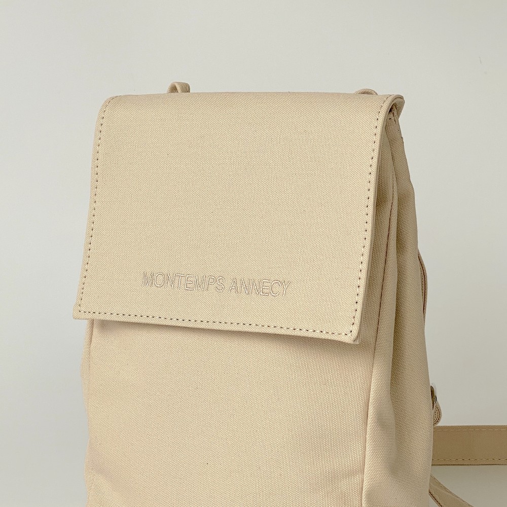 몽떵:안시의 자체제작 세번째 디자인 가방입니다.알프스 산맥의 만년설을 모티브로 형태가 있는 곳에 내린 눈처럼, 원단과 같은 색상의 실로 자수 처리를 하여 몽떵:안시의 로고를 양각으로 표현하였습니다. 인쇄된 로고와는 달리, 눈을 감고 손으로 만져 느낄 수 있는 형태로 이번 가방의 이름은 밤에 읽는 산 입니다.