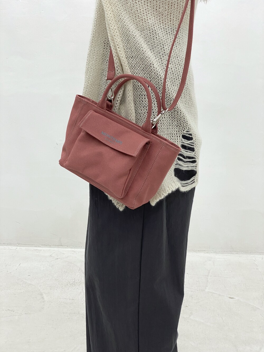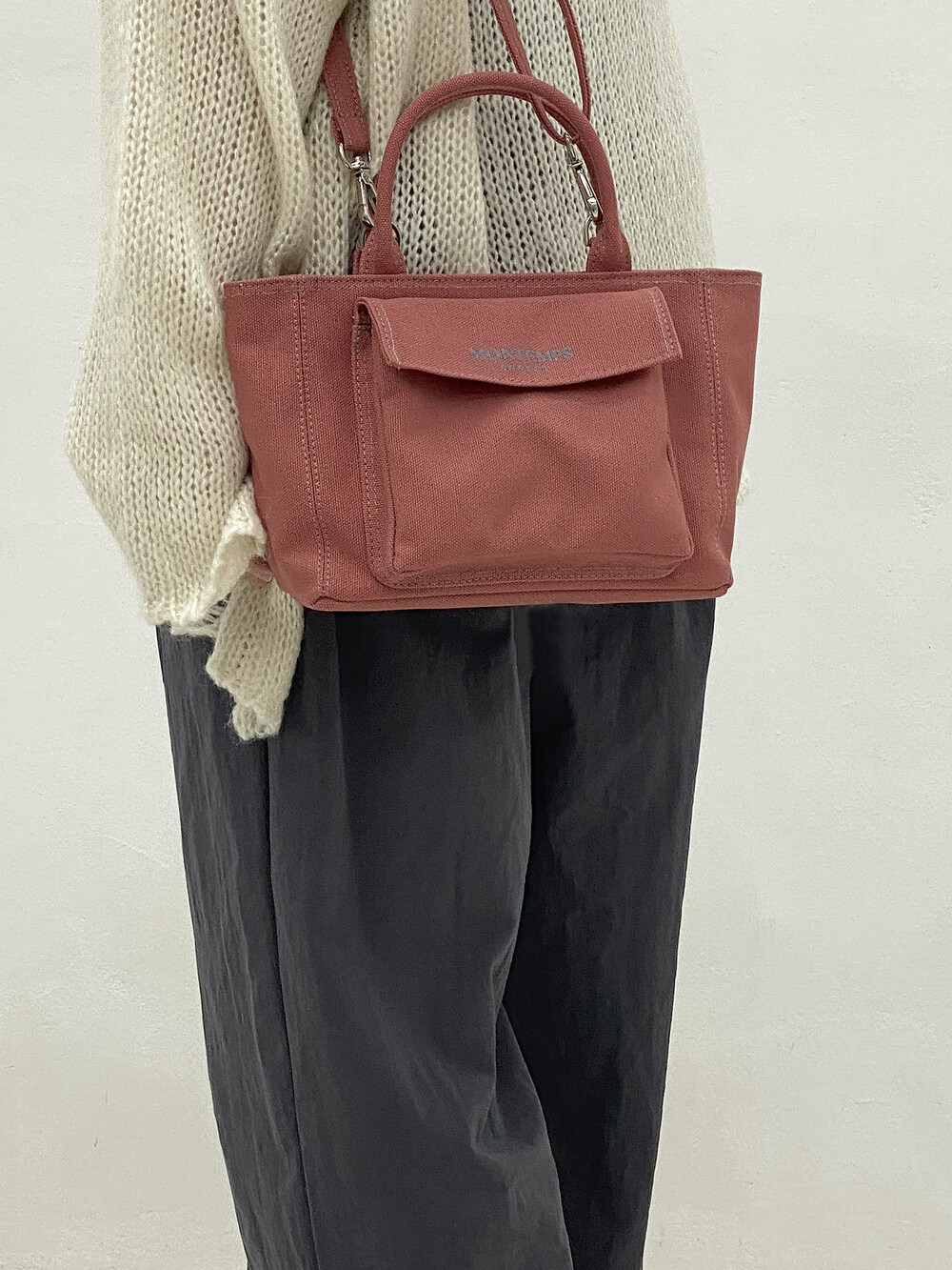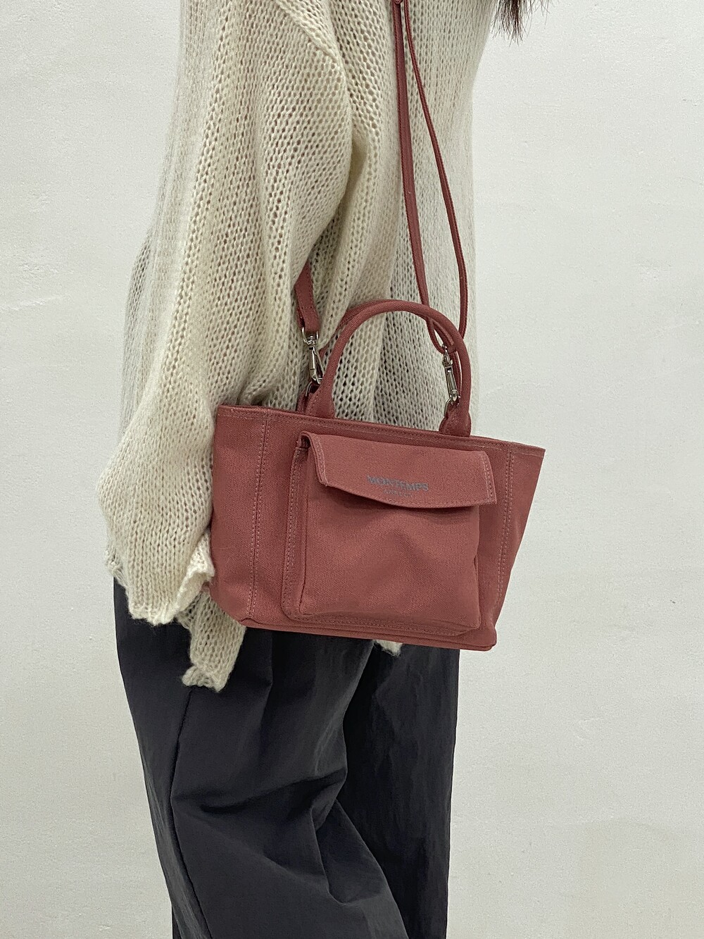 작지만 500mL 물병도 가로로 수납 가능하며, 세 가지 스트랩 형태로 룩에 따라 다양한 연출이 가능합니다.