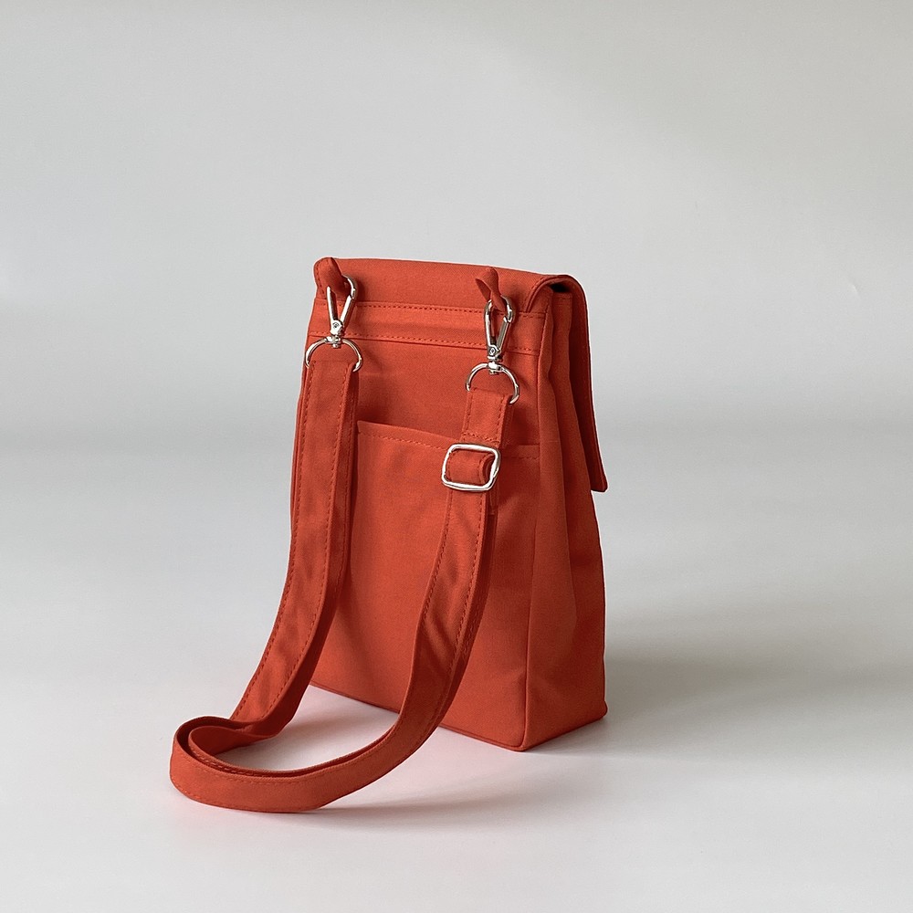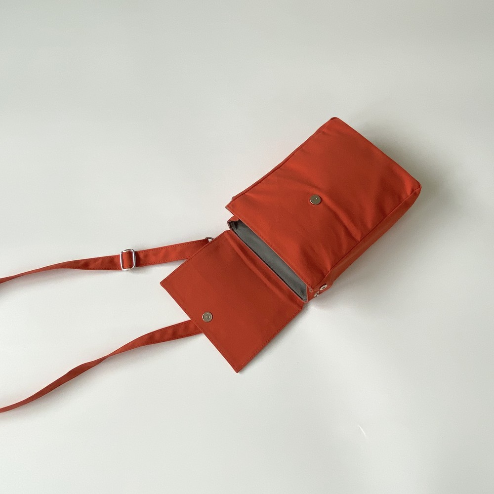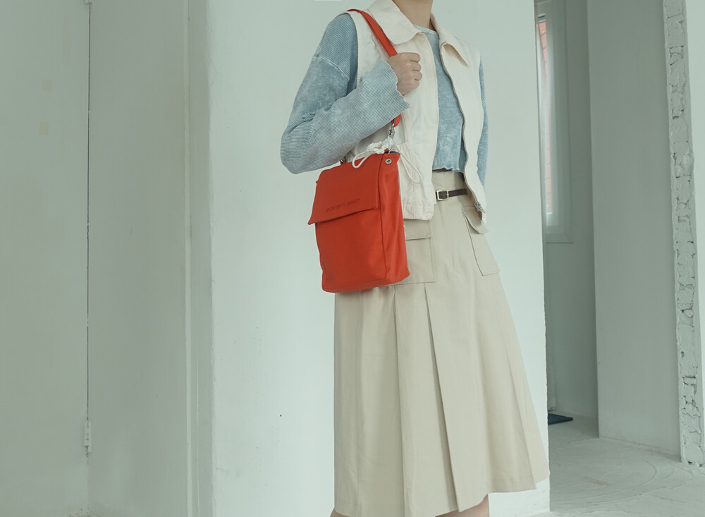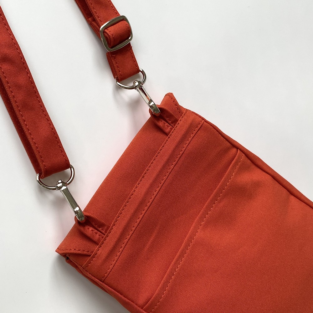 접히는 옆라인을 제외하고 가방 앞,뒤 그리고 뚜껑 안에 전체적으로 덧대는 3중 작업을 하여 견고하고 내구성이 튼튼합니다. 잘 보이지 않는 안감의 색감과 원단까지 신경썼습니다. 바닥재에는 단단한 가죽판을 안에 넣어, 천 특유의 부드러움과 가죽가방의 단단함이 공존하여 물건을 넣어도 쳐짐이 없습니다. 깊고 넓은 안주머니와, 가방 외부의 뒷면 주머니는 자주 사용하는 핸드폰과 카드, 요즘 필수품인 마스크를 잠시 수납하기에 편리합니다. 원단은 섬세한 염색 작업으로 독특한 색감과, 20수3합으로 일반적인 천보다 조직이 견고하며 짜임이 좋습니다. 스트랩은 크로스,숄더로 조절 가능합니다.
