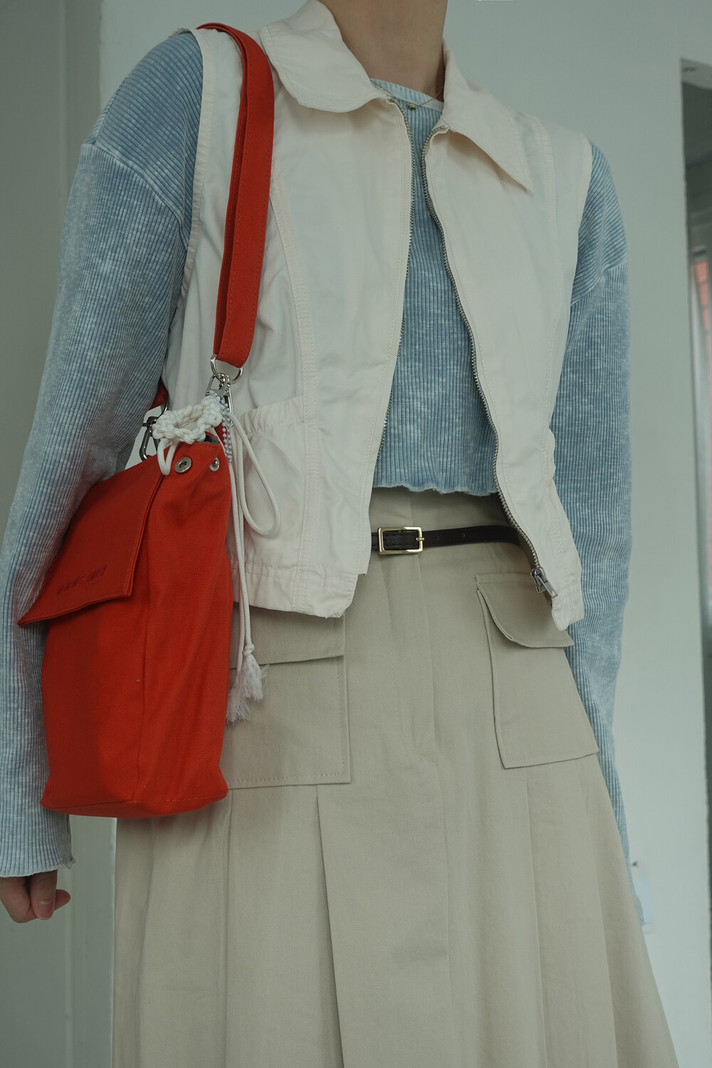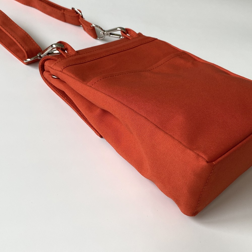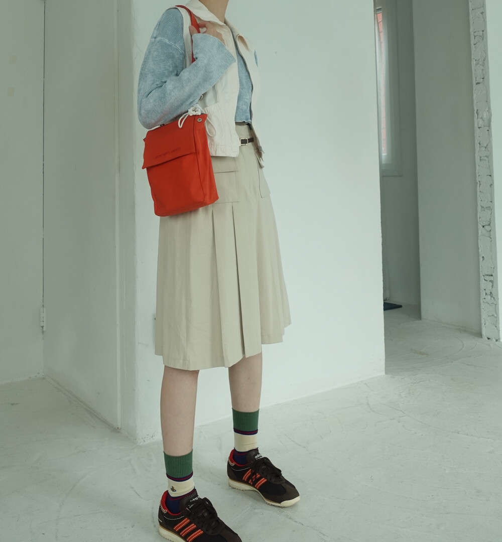 접히는 옆라인을 제외하고 가방 앞,뒤 그리고 뚜껑 안에 전체적으로 덧대는 3중 작업을 하여 견고하고 내구성이 튼튼합니다. 잘 보이지 않는 안감의 색감과 원단까지 신경썼습니다. 바닥재에는 단단한 가죽판을 안에 넣어, 천 특유의 부드러움과 가죽가방의 단단함이 공존하여 물건을 넣어도 쳐짐이 없습니다. 깊고 넓은 안주머니와, 가방 외부의 뒷면 주머니는 자주 사용하는 핸드폰과 카드, 요즘 필수품인 마스크를 잠시 수납하기에 편리합니다. 원단은 섬세한 염색 작업으로 독특한 색감과, 20수3합으로 일반적인 천보다 조직이 견고하며 짜임이 좋습니다. 스트랩은 크로스,숄더로 조절 가능합니다.